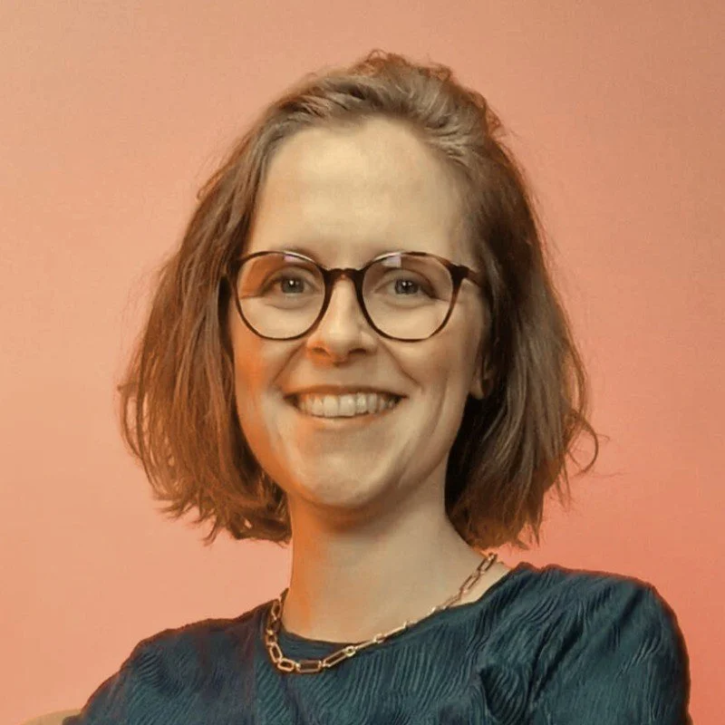 Image Description: A photo of neurodiversity trainer Sarah Castor-Perry smiling at the camera with an orange background